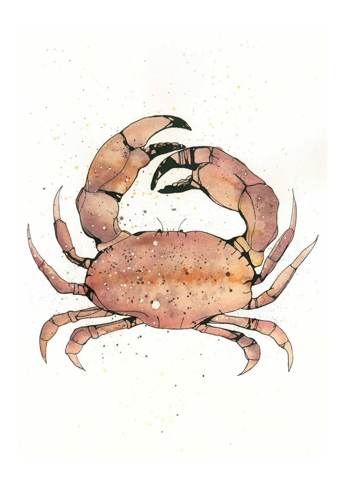 | "Taskekrabbe" Akvarel og flydende tusch |